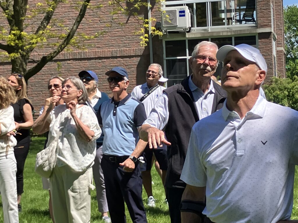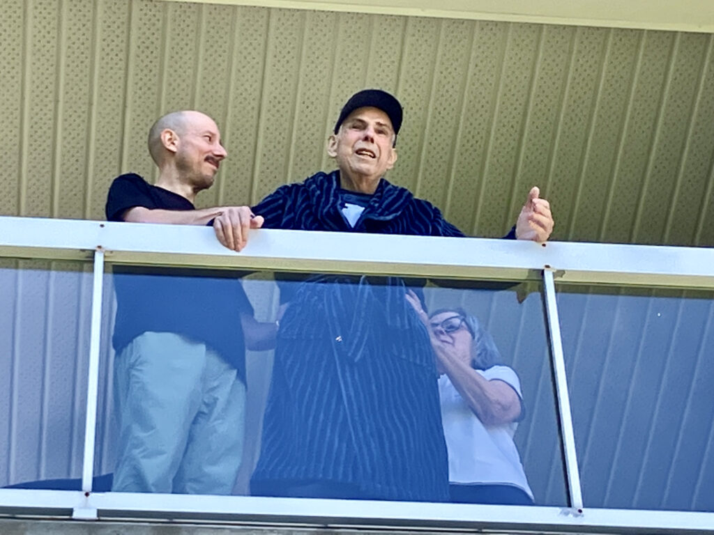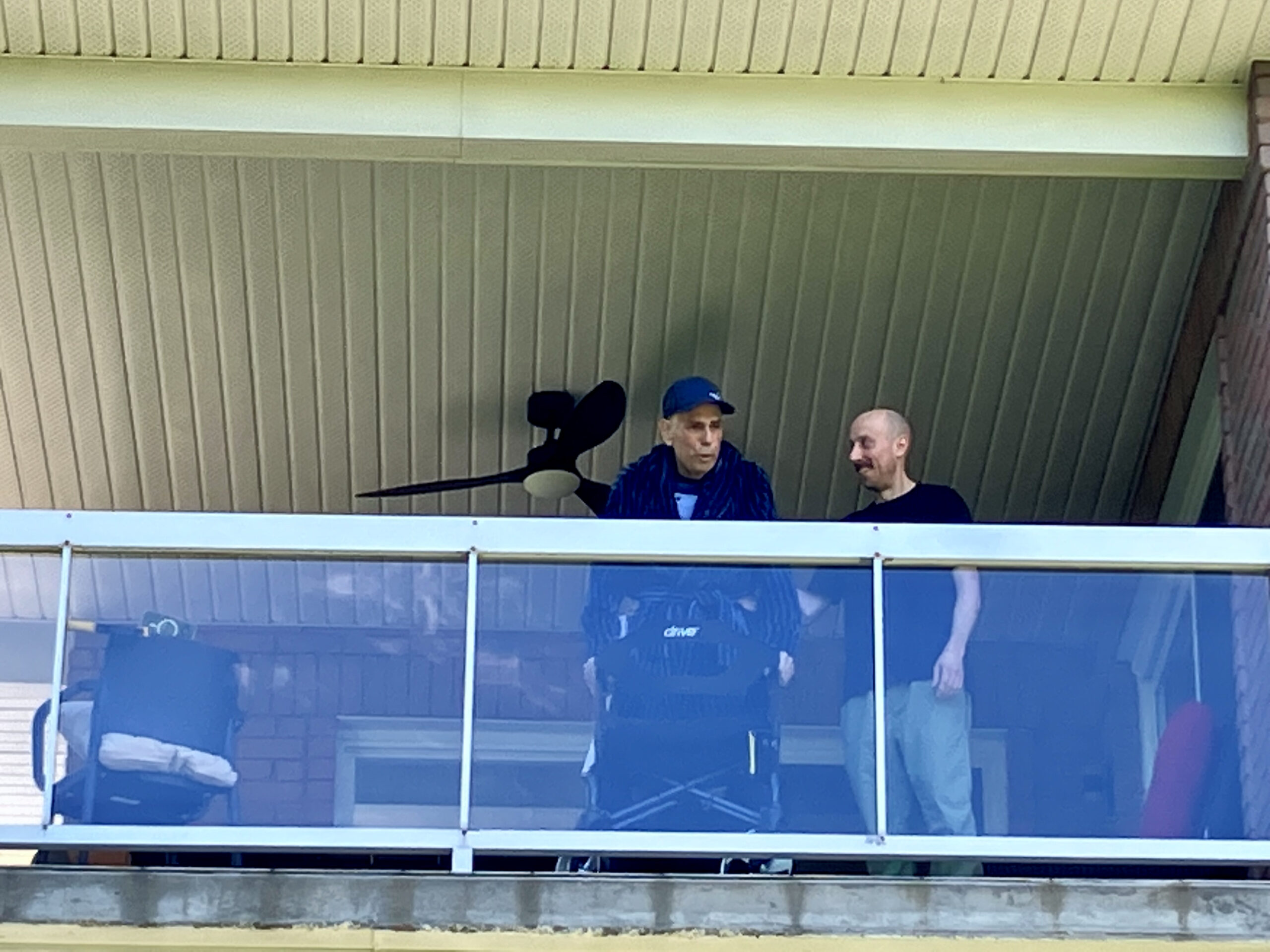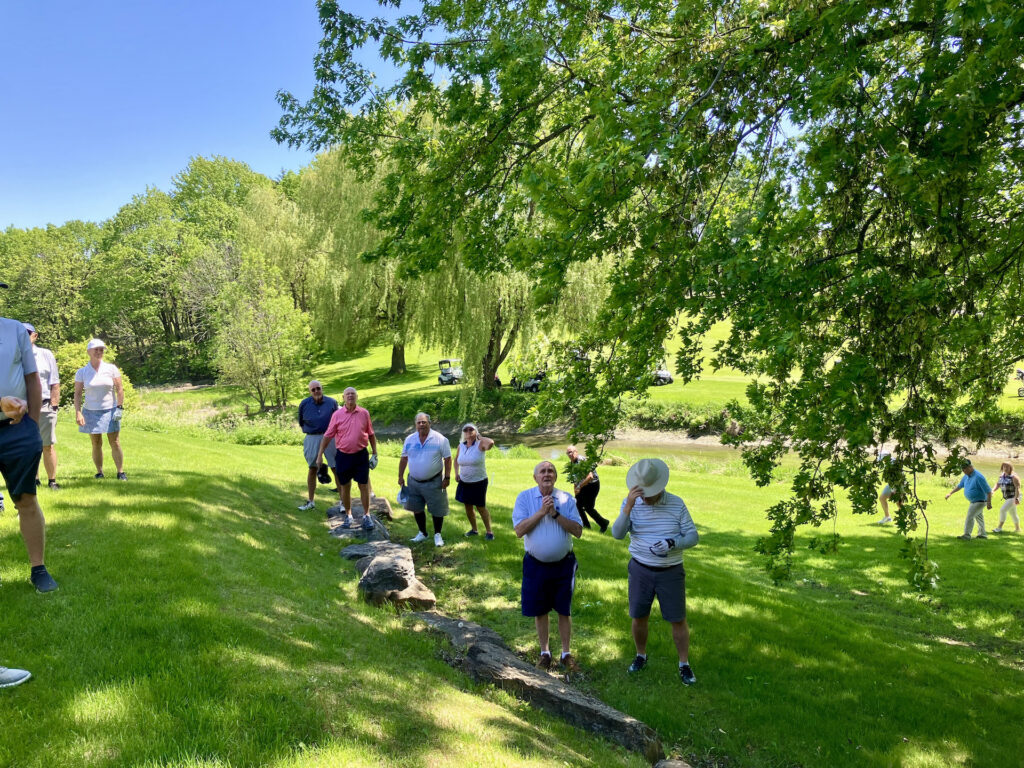 Le paternel, pour qui la saison précédente s’était terminée abruptement et ne pouvait plus espérer en entamer une nouvelle, souhaitait tellement revoir sa gang de « bons vivants » pour les remercier de leur soutien, n’a pas été en mesure de le faire. Je me suis dit, s’il ne peut pas aller au golf, nous allons faire venir le golf à lui! On a donc apporté un lutrin et micro devant le balcon de son condo, qui donnait sur le terrain, et le DG avait planifié des voiturettes pour amener les « bons vivants » afin qu’ils puissent se joindre à ses amis, voisins et employés du club pour lui livrer de vibrants témoignages. Mon papa a trouvé la force de se lever et de prononcer un discours, à son tour, qui s’est terminée sous une pluie d’applaudissements, de pouce en l’air et de : « on t’aime, on t’oubliera jamais! ».